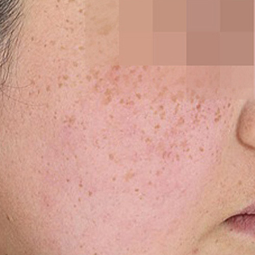 | 광대뼈, 이마, 코 주변에 대칭적으로 분포 | 분포부위 | 얼굴, 목, 팔 등 햇빛을 많이 받는 부위 |